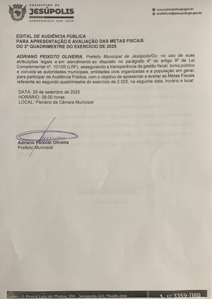 Edital de Audiência Pública – Avaliação das Metas Fiscais